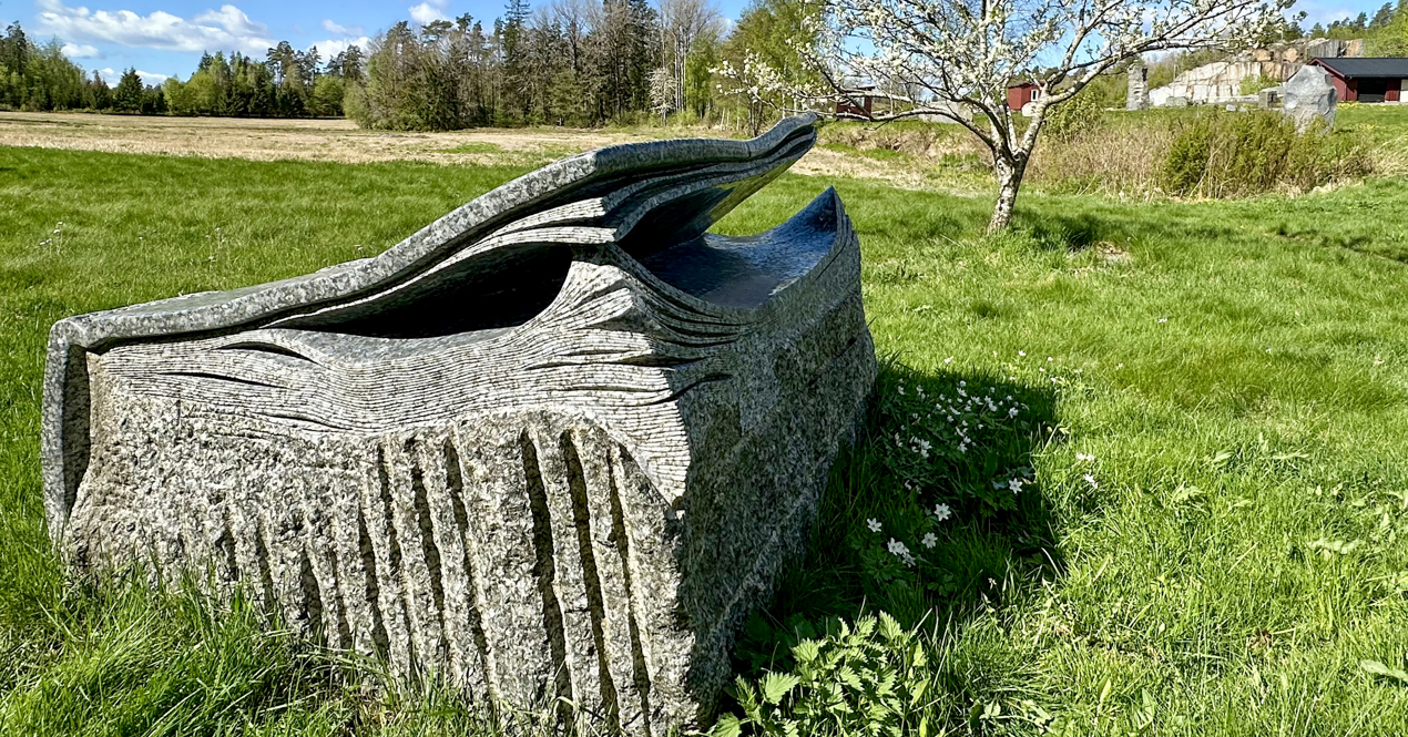 - Her er et arbeid av Rob Good fra England. Han kjente vi til. Visste at han kun lager verk av skyer, og tenkte hvor gøy må det ikke bli å se han utfolde seg med stein og med Larvikitten, en av de hardeste steinene av de alle!, forteller Christine entusiastisk. Og sky av stein har det blitt.
